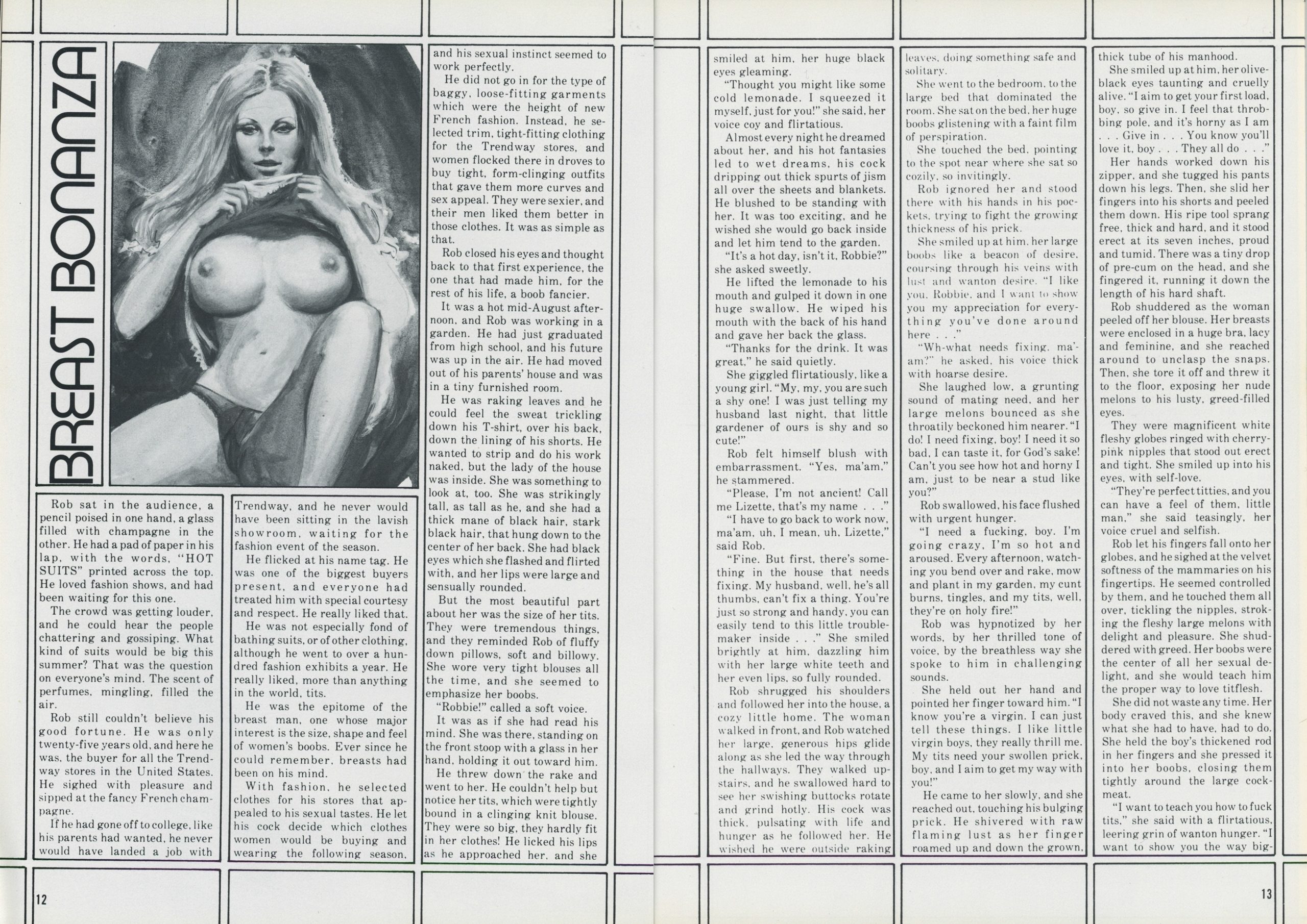 Adoration of the female breast is as old as humankind. This vintage porn magazine is devoted of the exploration of the different aspects of female mammaries and female boobs and tits; the psychological, the aesthetic, the erotic. It is a subject that can never bear too much discussion or appreciation.
